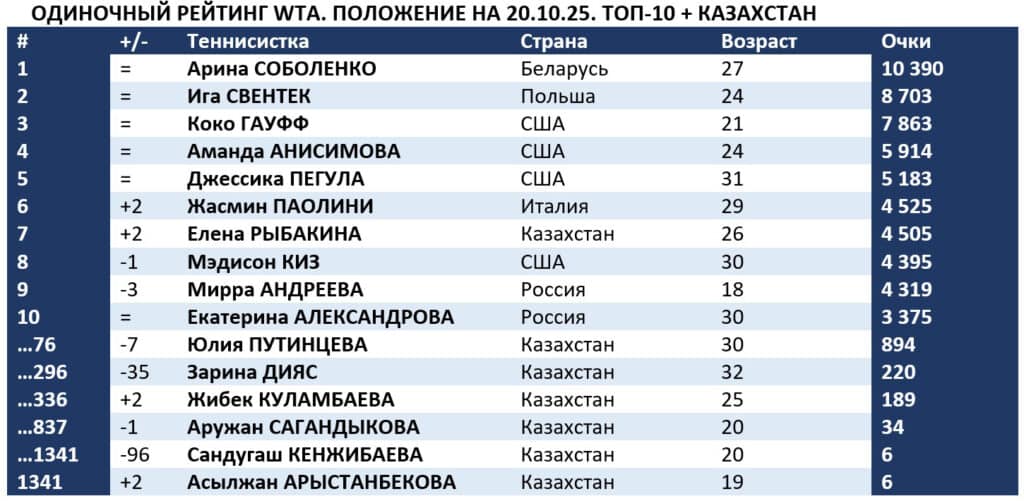 Триумфально завершив турнир Ningbo Open-2025 Елена Рыбакина поднялась на две ступени мирового рейтинга. И продолжает борьбу за путёвку в Эр-Рияд, где с 1 по 8 ноября пройдёт итоговый турнир года. На этой неделе казахстанка сыграет в Токио