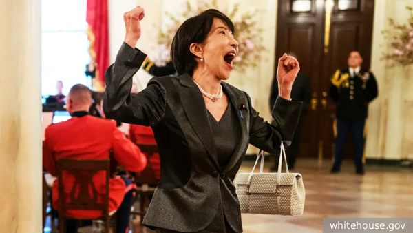 Публикация фотографии японского премьера Санаэ Такаити с ужина в США спровоцировала бурную реакцию пользователей соцсетей из-за её эмоционального поведения.