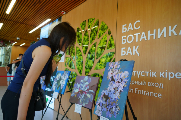 Художница Анара АБЖАНОВА представила серию своих “яблоневых” картин - её вдохновляют цветы, поэтому на них символ и бренд города и области представлен цветущими веточками.