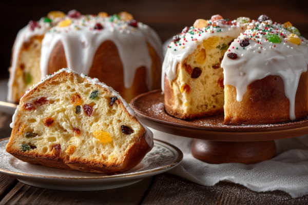 Рецепт: в теплом молоке растворите дрожжи и 1 ч. л. сахара. Оставьте на 15 минут. Смешайте муку, сахар, соль, добавьте опару, яйца и цедру. Замесите тесто, постепенно вводя мягкое масло кусочками. Вымешивайте не менее 20 минут, пока тесто не станет блестящим и эластичным, отходящим от рук. Вмешайте изюм и цукаты. Накройте плёнкой, дайте подойти 2-3 часа, обминая каждые 40 минут. Разложите тесто в формы на 1/3, дайте подойти до краев. Выпекайте при 170 °C 35–50 минут.