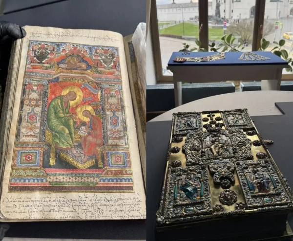 Мединский отметил ряд уникальных реликвий в экспозиции. Например, Ефремово Евангелие 1606 года, которым митрополит Казанский и Свияжский Ефрем венчал на царство в 1613 году первого представителя династии Романовых Михаила Федоровича. Эта рукопись была оформлена вручную разноцветными красками, золотом и серебром, а её сохранность «поразительная – все краски живые». Также в музее сохранилось Адрианово Евангелие конца XVII века весом 11 килограммов, украшенное золотом, драгоценными камнями и эмалевыми вставками.