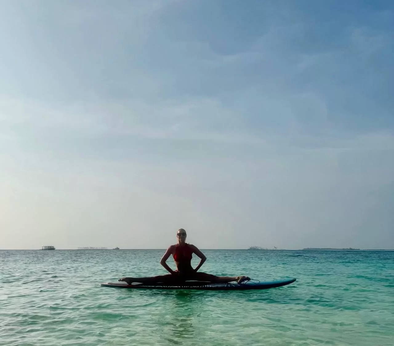 «Пляжный экзерсис на Мальдивском острове», — кокетливо подписала фото Анастасия.