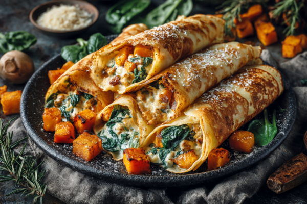 Возьмите 250 г тыквы, 100 г козьего сыра, 2 ст. л. бальзамического уксуса и 50 г шпината. Запекайте тыкву 20 минут при 180 градусах, разомните. Смешайте с измельченным сыром, шпинатом и уксусом. Посолите по вкусу, дайте постоять 15 минут. На 100 г — 180 ккал, полно бета-каротина и белка. Эта начинка для блинов — полезный вариант для подготовки к посту или для любителей фитнеса.
